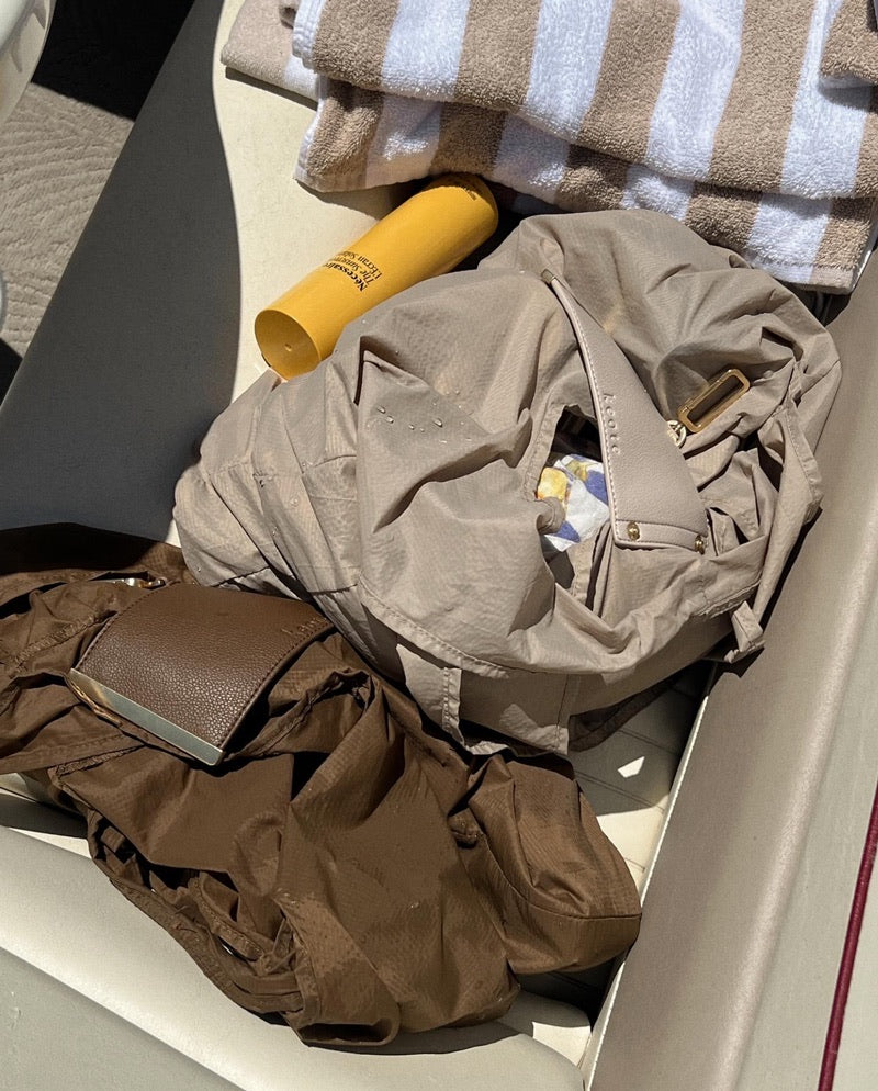 Zaskakująco dużo. Bez problemu zmieścisz telefon, klucze, portfel, kosmetyki, słuchawki czy okulary. Po rozłożeniu pełni funkcję poręcznej torby na codzienne sytuacje